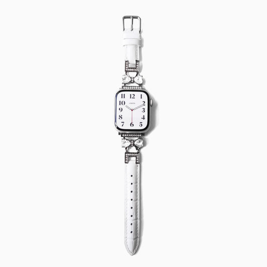 Slim Coquette Bow Leather Apple Watch Strap - Pink