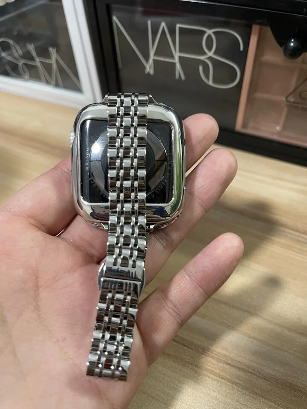 a silver strap for apple watch