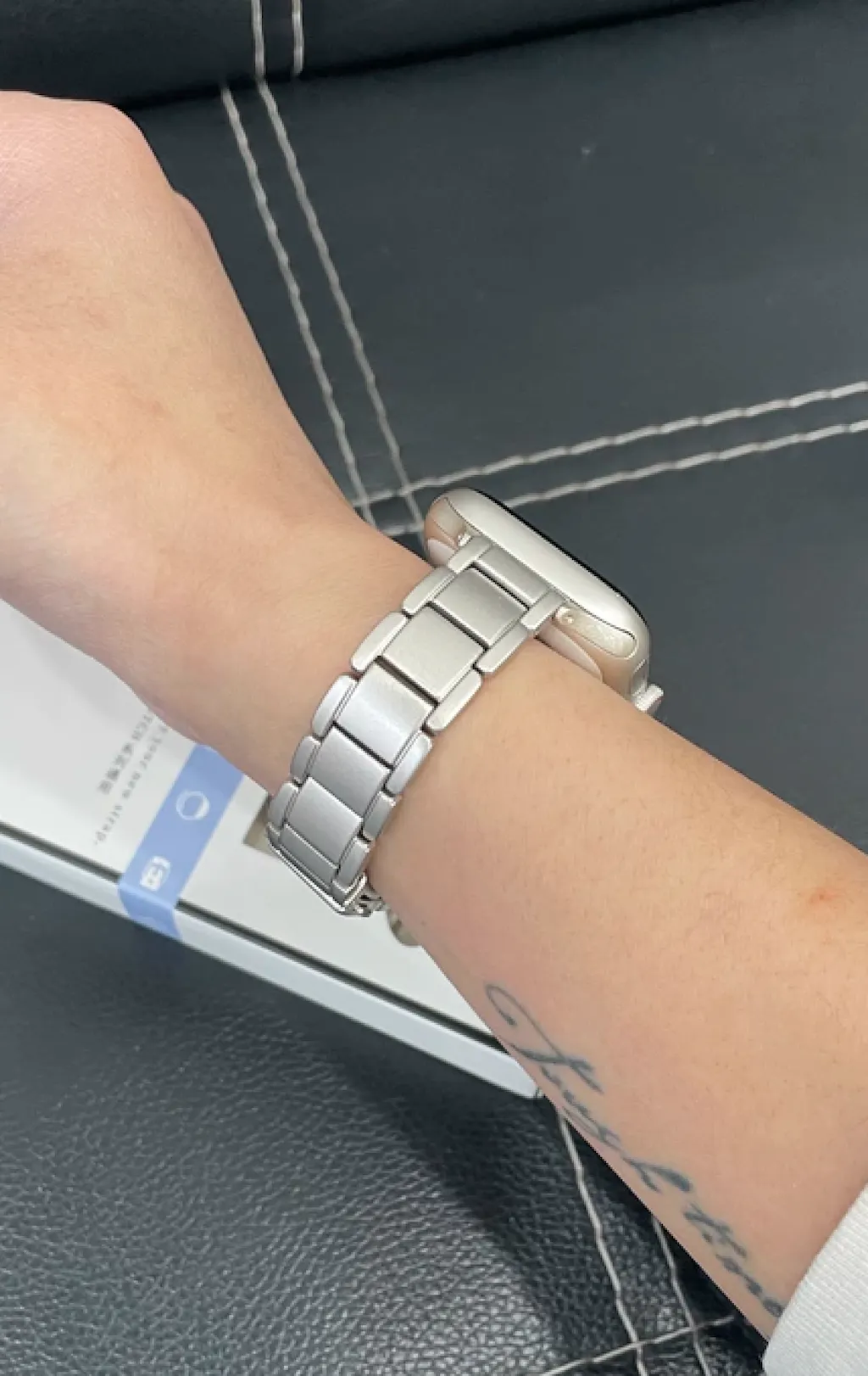 高品質の304ステンレス鋼で作られたこのスリムで防水のストラップは、折りたたみ式のクラスプを備え、耐久性とエレガンスを兼ね備えています。その防水設計は、どんな服装にもクラシックで洗練されたタッチを加えます。