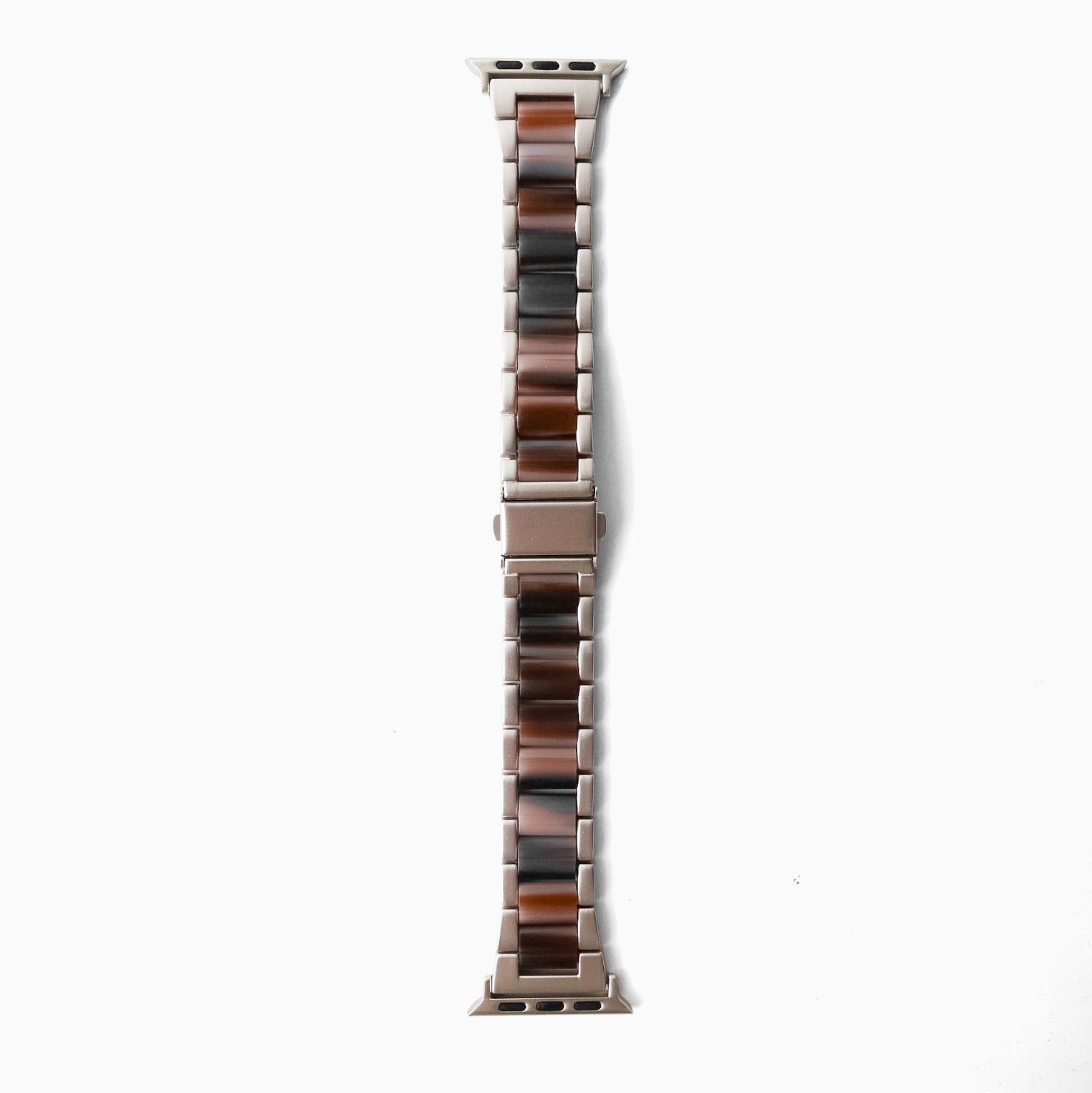 This lightweight, durable, and waterproof resin Apple Watch strap features a polished finish for sleek sophistication. Perfect for casual or office wear, its stainless steel clasp ensures a secure, adjustable fit tailored to your wrist.