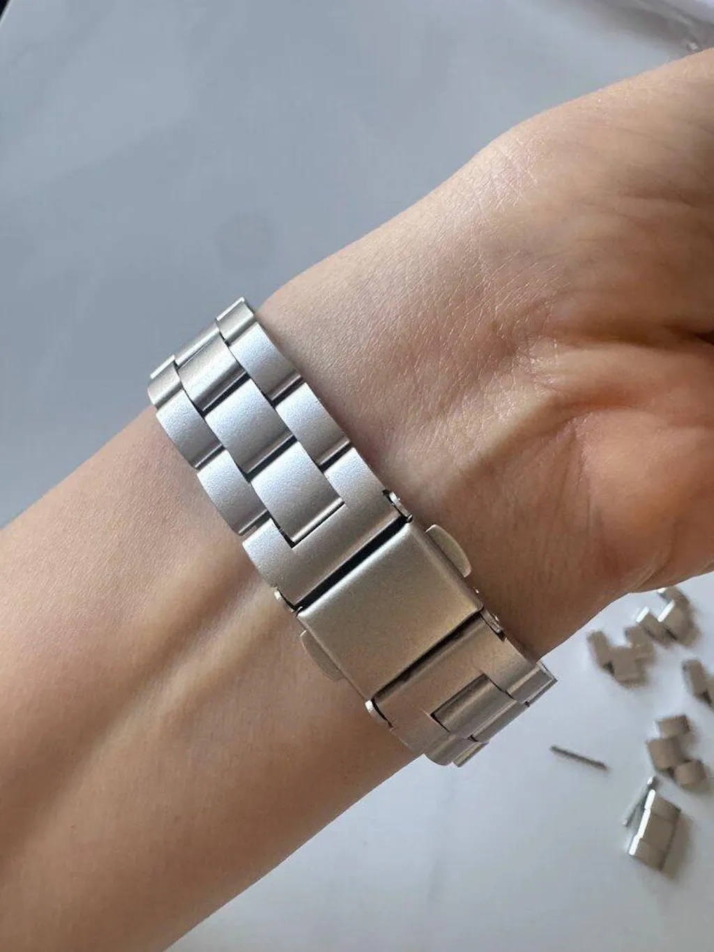 Forged from premium stainless steel, this sleek, water-resistant strap with a folding clasp blends durability with timeless elegance.