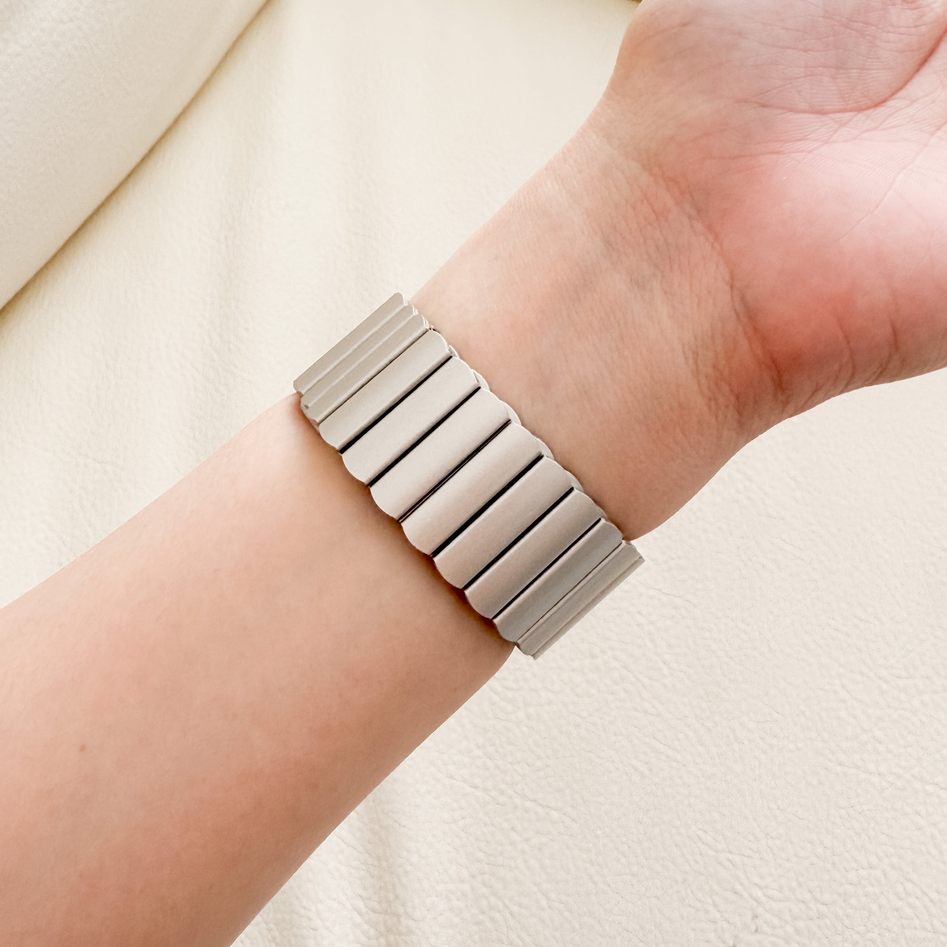 The silver stainless steel mgnetic strap redefines elegance with its sleek, adjustable design. Crafted from premium 304 stainless steel, it offers a secure magnetic fit and unmatched comfort for all wrist sizes, blending style and sophistication effortlessly.